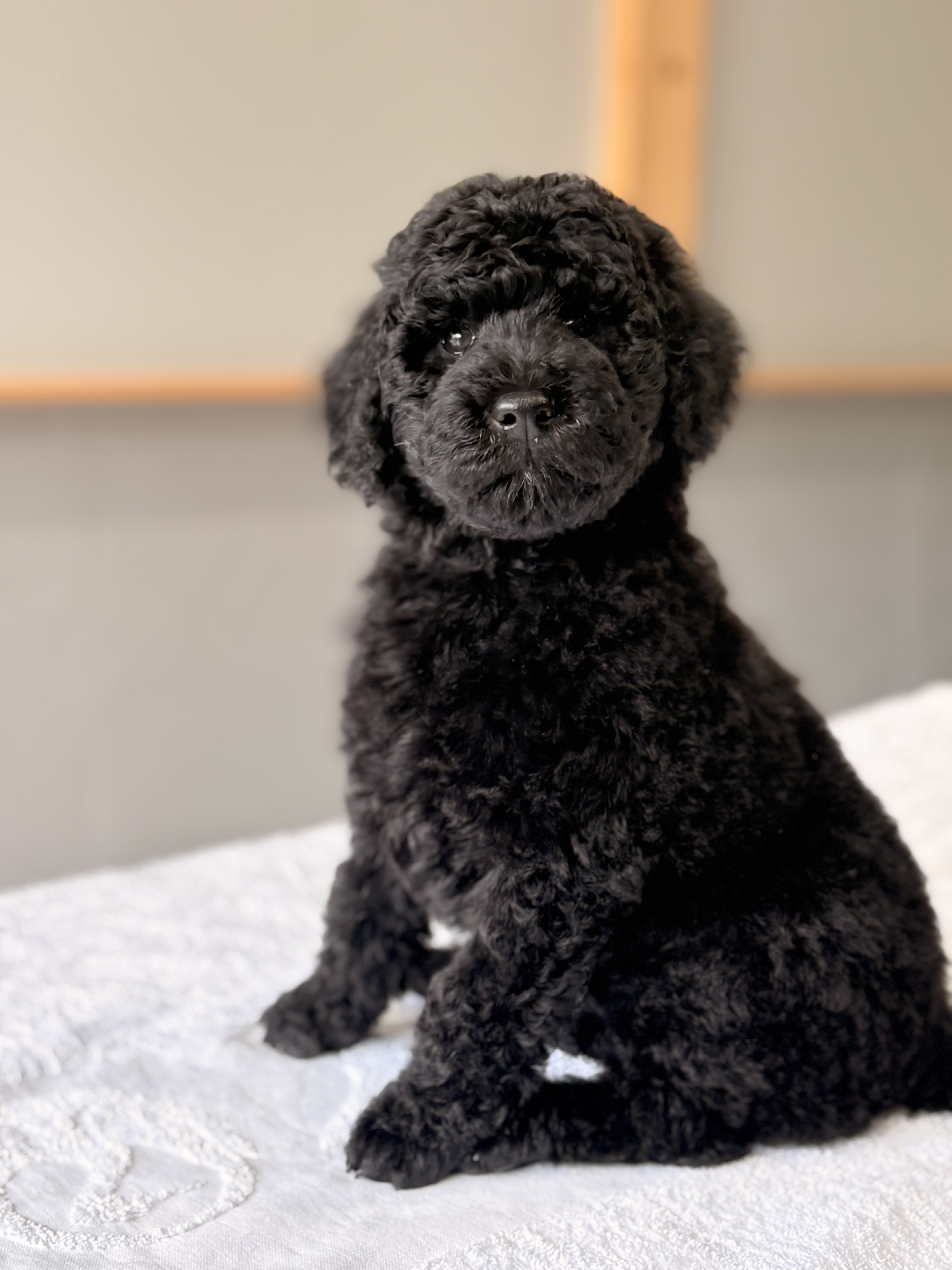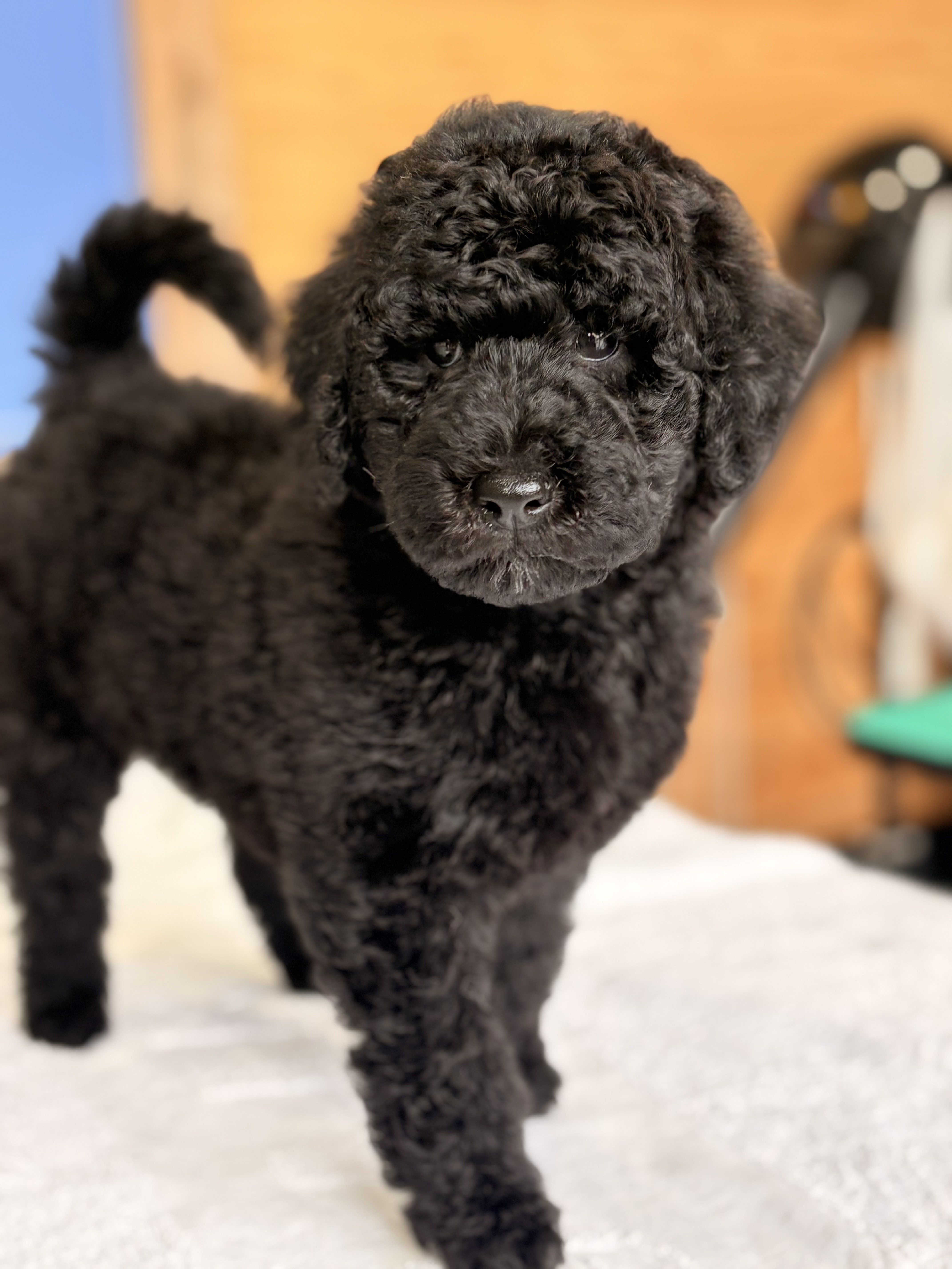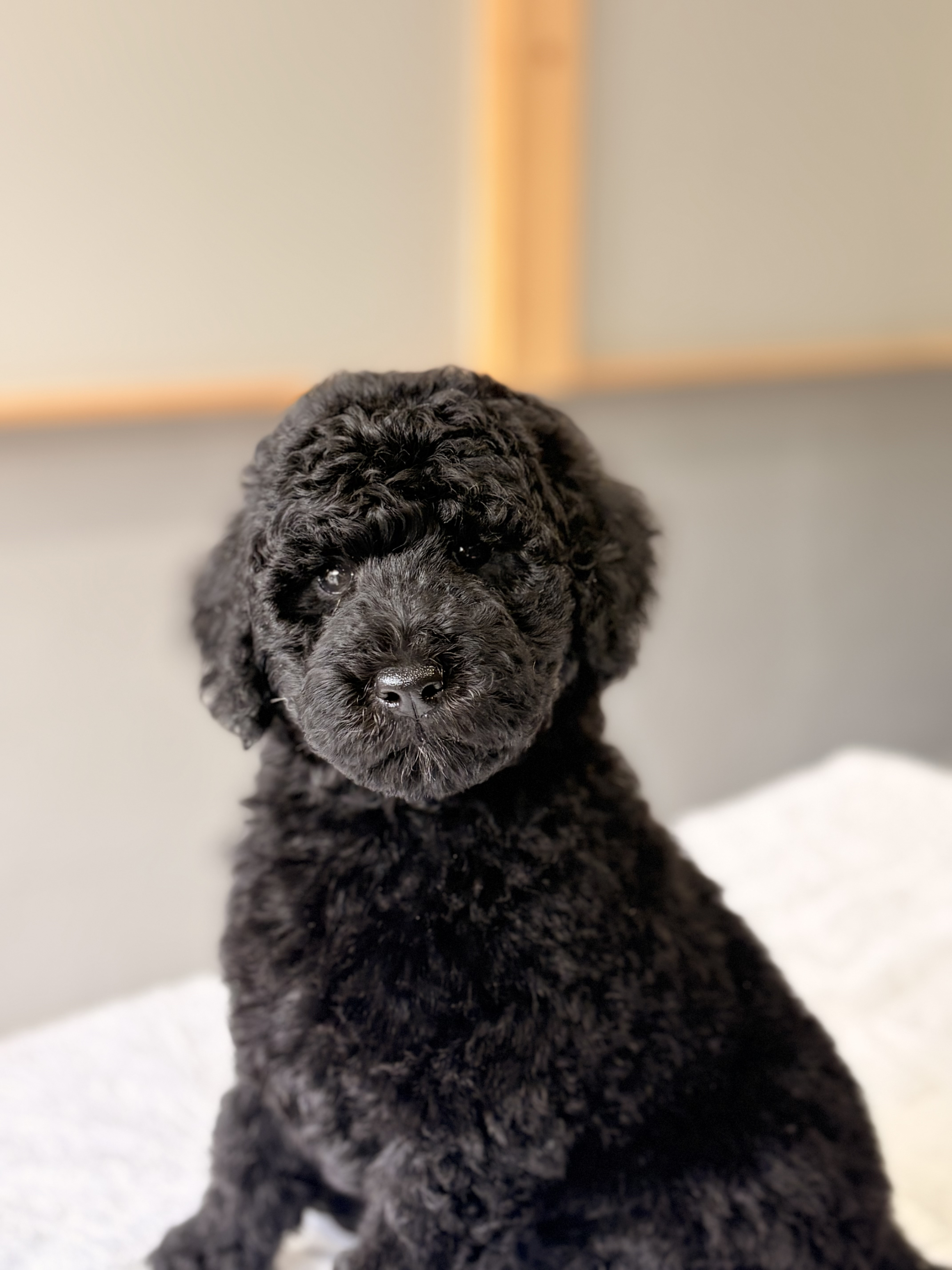 ふわふわとした上質な毛並みと、優しい表情が印象的なブラックの女の子です。 とても落ち着きがあり、人の様子をよく見て行動できる賢さを持っています。